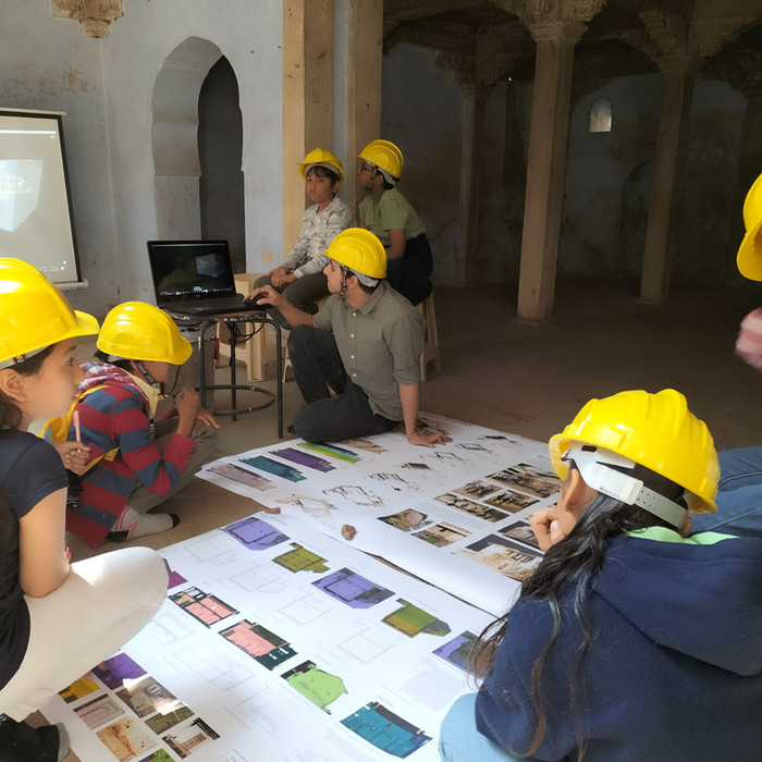 In this workshop, participants were exposed to the technology of 3D Laser Scanning (digital twinning) through the case of the rare old timber mosque in the historic city of Ahmedabad. The workshop, through a projector setup on-site, encouraged participants to explore the 3D Point Cloud data of the timber mosque v/s panoramic images captured.The workshop introduced young participants to the theory of digital documentation, its purpose, and limitations and explored the various outputs of the 3D model through three fun activities: